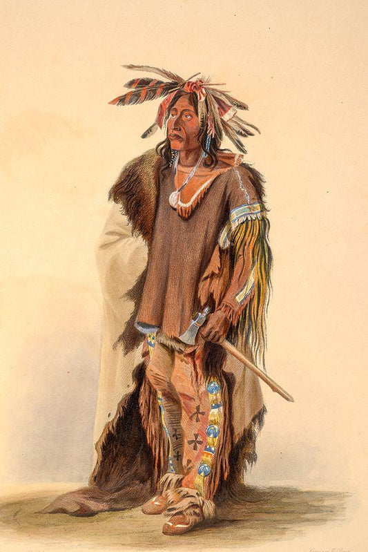 A Minatarre Indian Chief White Modern Wood Framed Art Print with Double Matting by Bodmer, Karl