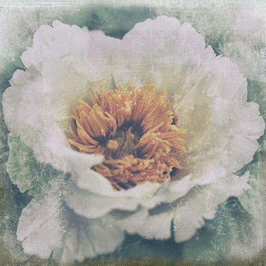 Nostalgic Peony Blossom White Modern Wood Framed Art Print with Double Matting by Anonymous