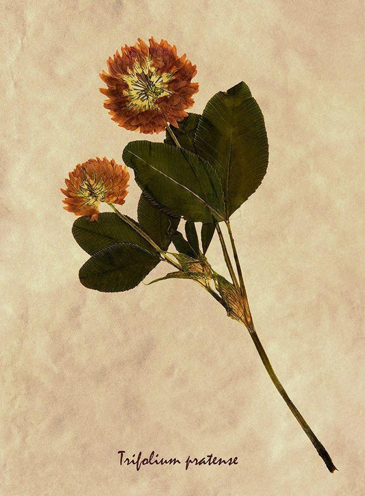 Pressed and Dried Red Clover White Modern Wood Framed Art Print with Double Matting by Anonymous