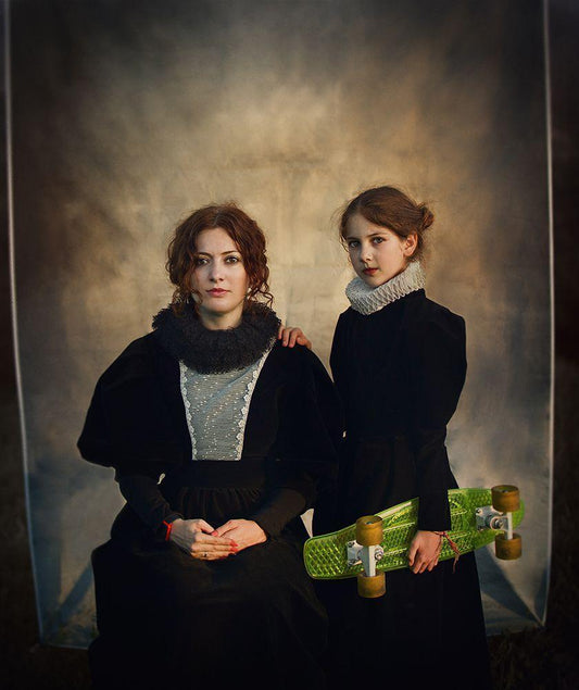 Blues Sisters White Modern Wood Framed Art Print with Double Matting by Schaller, Peter