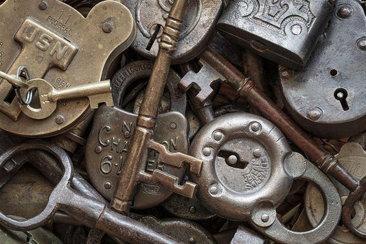 Washington State-Seabeck Close-up of locks and keys White Modern Wood Framed Art Print with Double Matting by Jaynes Gallery