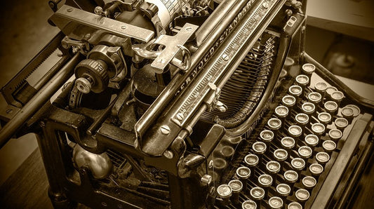 Usa-California Vintage typewriter at a historic radio receiving station at Point Reyes White Modern Wood Framed Art Print with Double Matting by Sederquist, Betty