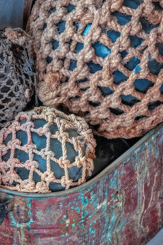 Antique Japanese glass floats-Wrangell-Alaska-USA White Modern Wood Framed Art Print with Double Matting by Engelbrecht, Jim