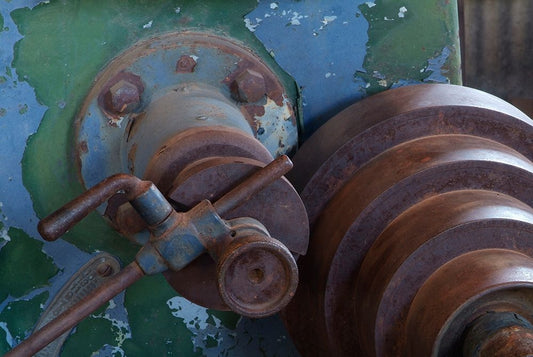 Usa-California Heavy equipment rusts in the machine shop at the Bodie Stamp Mill White Modern Wood Framed Art Print with Double Matting by Sederquist, Betty