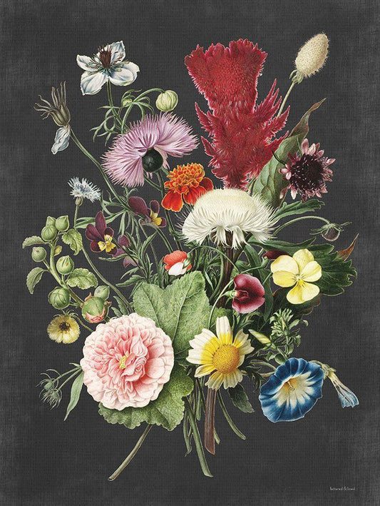 Vintage Bouquet White Modern Wood Framed Art Print with Double Matting by Lettered And Lined