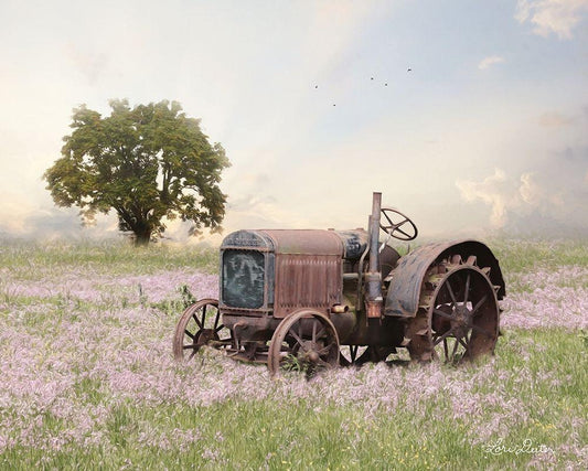 Tractor at Sunset White Modern Wood Framed Art Print with Double Matting by Deiter, Lori