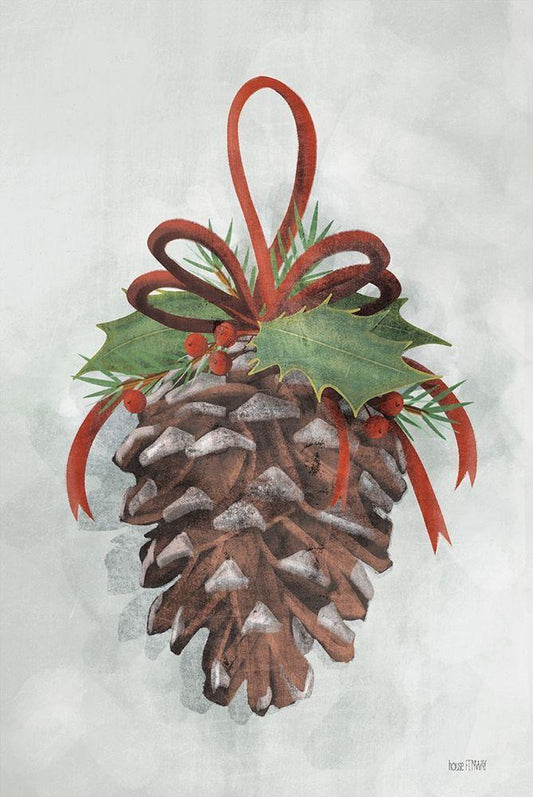 Holly Pinecone White Modern Wood Framed Art Print with Double Matting by House Fenway