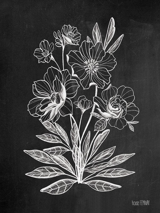 Vintage Chalkboard Flowers White Modern Wood Framed Art Print with Double Matting by House Fenway