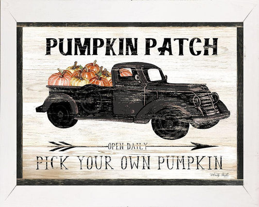 Pumpkin Patch Black Truck White Modern Wood Framed Art Print with Double Matting by Jacobs, Cindy