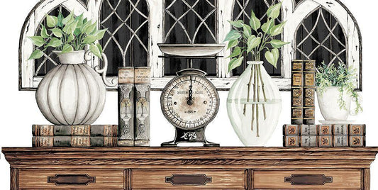 Books and Vintage Scale White Modern Wood Framed Art Print with Double Matting by Jacobs, Cindy