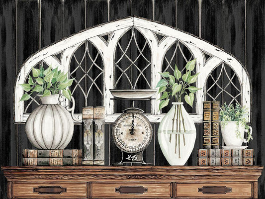 Antique Scale and Books White Modern Wood Framed Art Print with Double Matting by Jacobs, Cindy