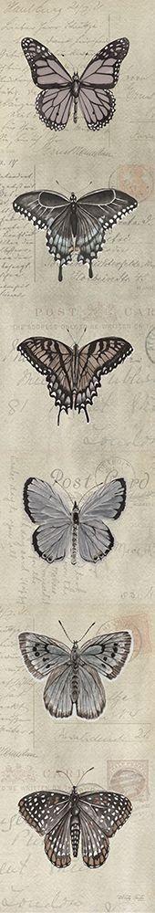 Postcard Butterfly I White Modern Wood Framed Art Print with Double Matting by Jacobs, Cindy