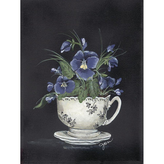 Tea Cup Violets Gold Ornate Wood Framed Art Print with Double Matting by Norkus, Julie