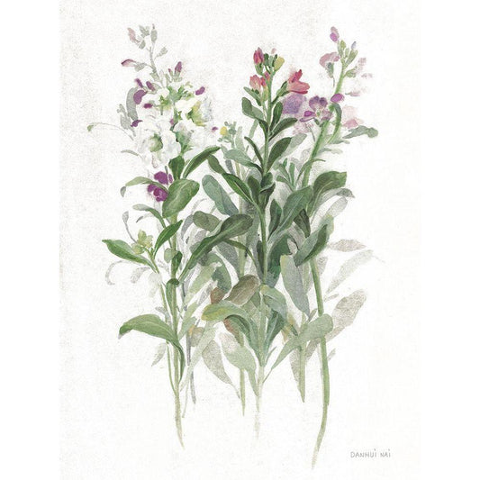 Sprigs of June I White Gold Ornate Wood Framed Art Print with Double Matting by Nai, Danhui