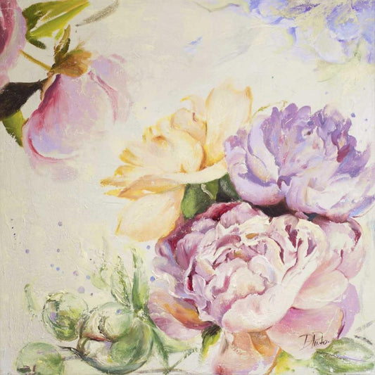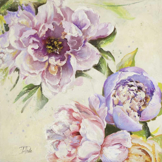 Newly Blossomed Peonies Gold Ornate Wood Framed Art Print with Double Matting by Loreth, Lanie