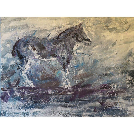 White Stallion on Silver White Modern Wood Framed Art Print by Rose, Martin