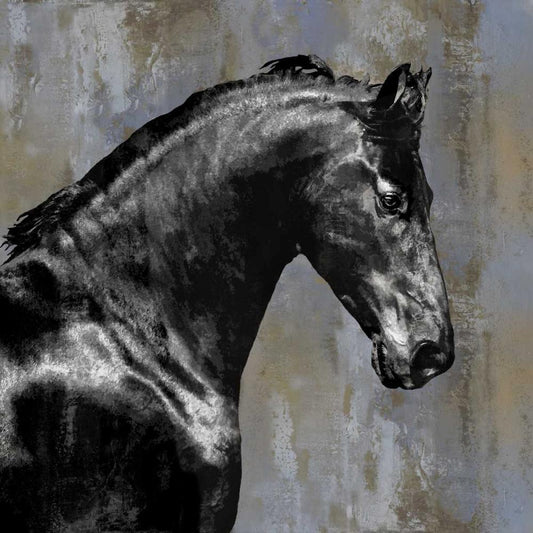 Black Stallion on Silver White Modern Wood Framed Art Print by Rose, Martin