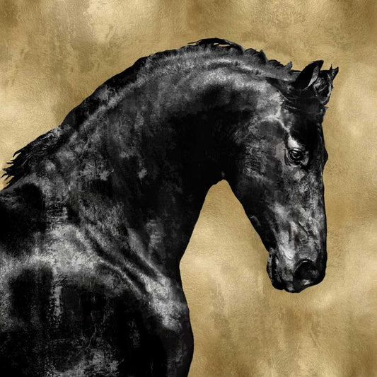 Black Stallion on Gold White Modern Wood Framed Art Print by Rose, Martin