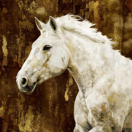 White Stallion on Gold White Modern Wood Framed Art Print by Rose, Martin