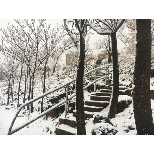 Jerome Snowy Stairs I White Modern Wood Framed Art Print by Popcorn