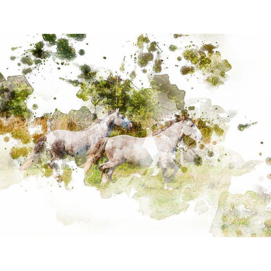 Stallions White Modern Wood Framed Art Print by Young, Chamira