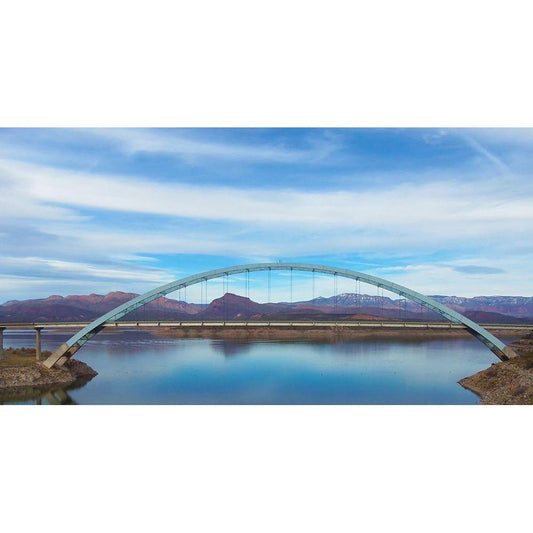 Roosevelt Lake Bridge White Modern Wood Framed Art Print by Popcorn