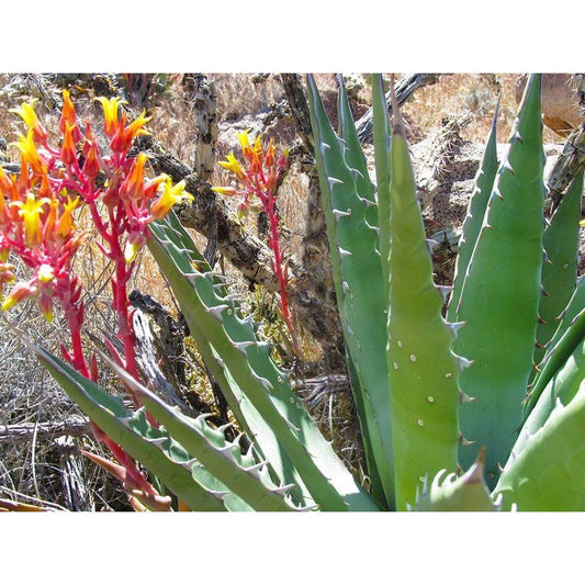 Rock Echeveria II W/ Agave White Modern Wood Framed Art Print by Popcorn
