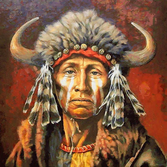 Old Indian Man White Modern Wood Framed Art Print by Medeiros, Celito