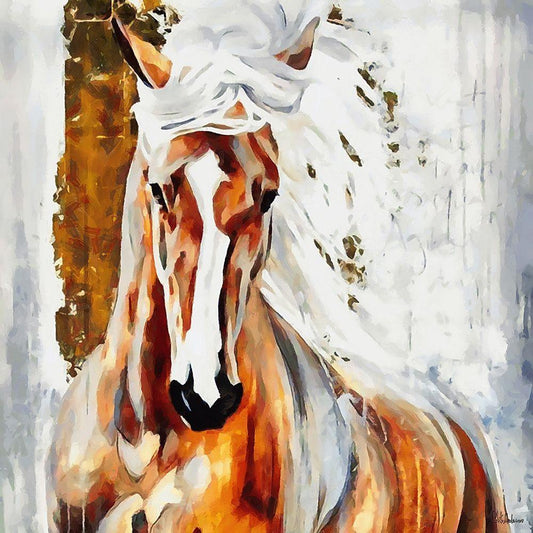 Brown Horse White Modern Wood Framed Art Print by Besedina, Anastasiia