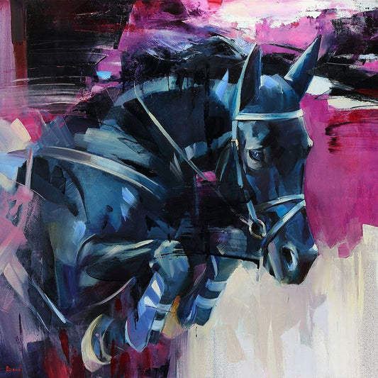 Horse on pink Background White Modern Wood Framed Art Print by Bond