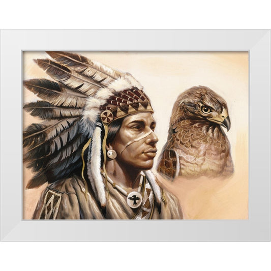 Chief And Eagle White Modern Wood Framed Art Print by Unknown