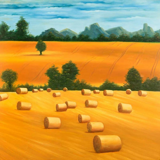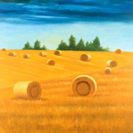 Hay Bale Fields White Modern Wood Framed Art Print by Atelier B Art Studio