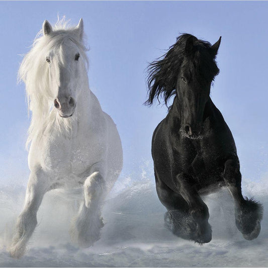 Wild Horses II White Modern Wood Framed Art Print by Unknown