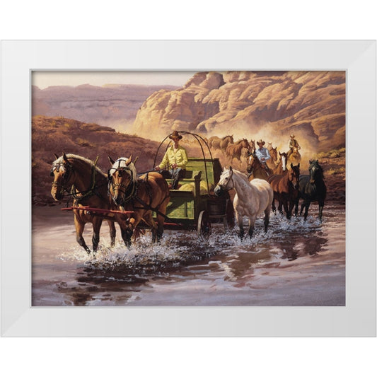 Wagon Train White Modern Wood Framed Art Print by Unknown