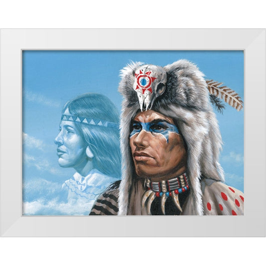 Chief And Eagle White Modern Wood Framed Art Print by Unknown