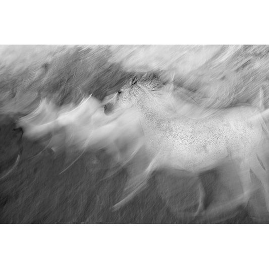Gallop In White Modern Wood Framed Art Print by Malovrh, Milan