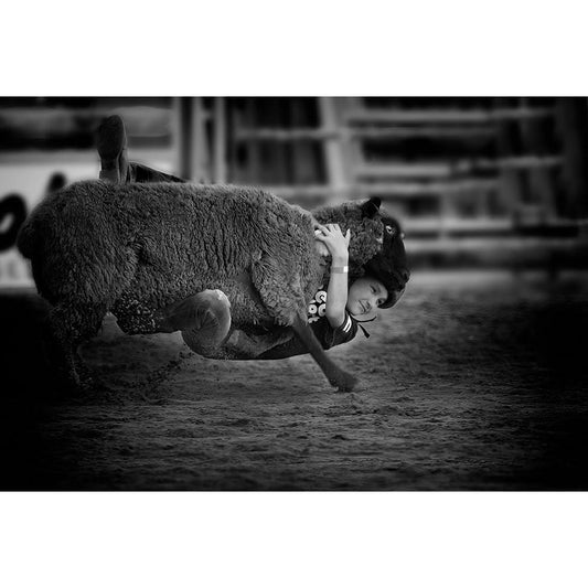 The Brave Little Cowboy Is Smile White Modern Wood Framed Art Print by Liang, Ken