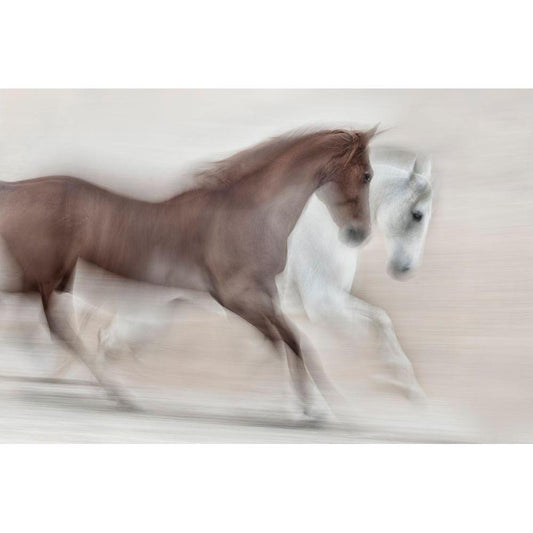 Horses (Colored Version) White Modern Wood Framed Art Print by Romaggi, Michel