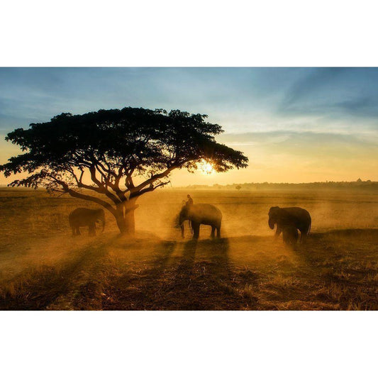 Morning Elephant Home Town White Modern Wood Framed Art Print by Whanset, Saravut