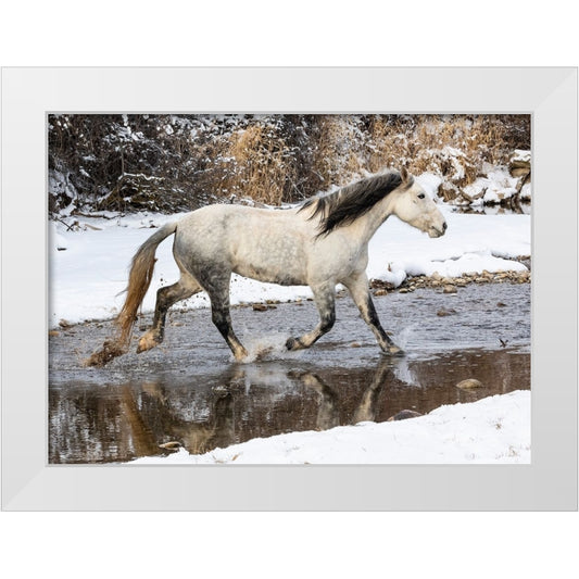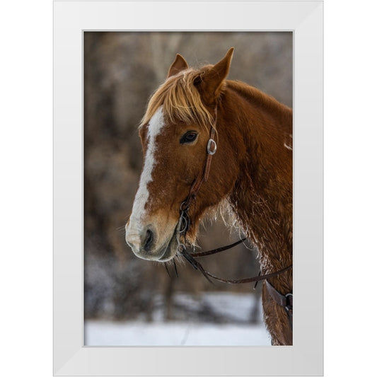 USA- Wyoming. Hideout Horse Ranch- horse in snow. White Modern Wood Framed Art Print by Looney, Hollice