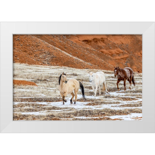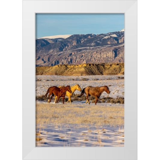 USA- Wyoming. Hideout Horse Ranch- horses in snow. White Modern Wood Framed Art Print by Looney, Hollice