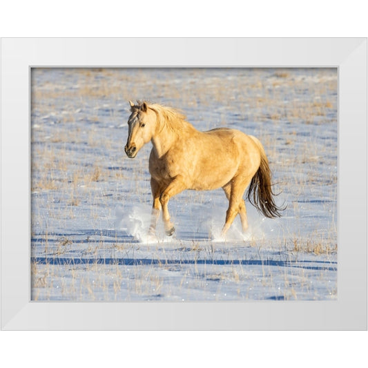 USA- Shell- Wyoming. Hideout Ranch lone horse in snow. White Modern Wood Framed Art Print by Gulin, Darrell