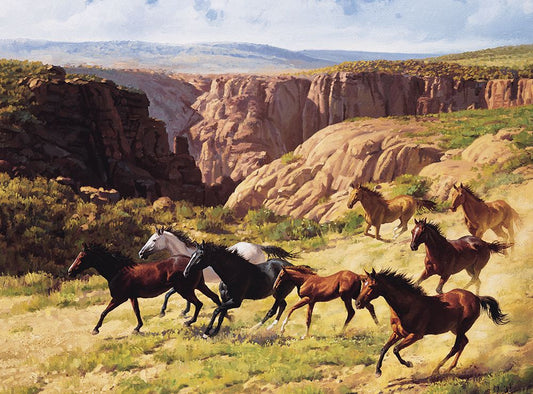 Wild Horses I White Modern Wood Framed Art Print with Double Matting by Unknown