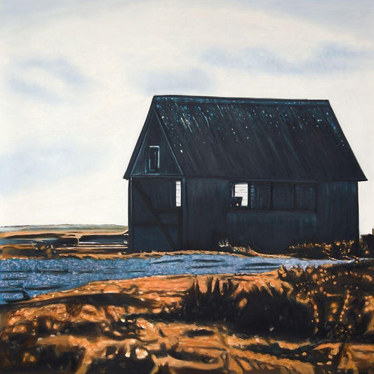 White barn view White Modern Wood Framed Art Print with Double Matting by Atelier B Art Studio