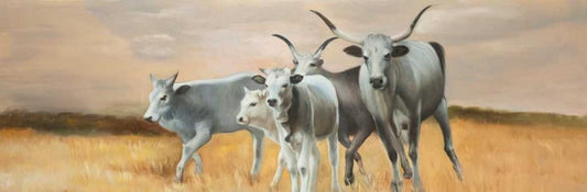 Nguni Cattle White Modern Wood Framed Art Print with Double Matting by Atelier B Art Studio