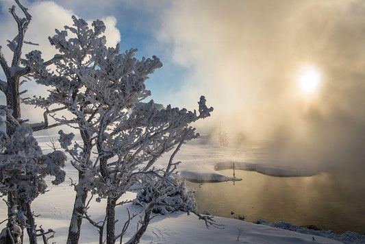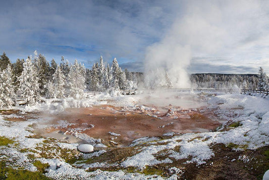 Winter at Fountain Paint Pot, Yellowstone National Park White Modern Wood Framed Art Print with Double Matting by The Yellowstone Collection