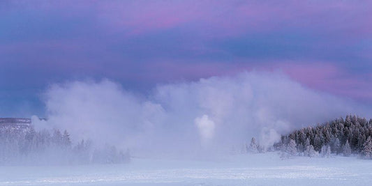 Winter Dawn, Upper Geyser Basin, Yellowstone National Park White Modern Wood Framed Art Print with Double Matting by The Yellowstone Collection