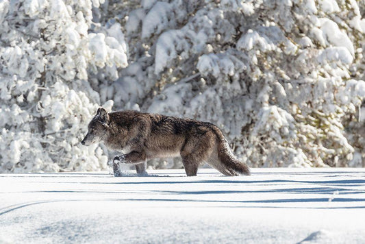 Wolf Moving through Fresh Snow, Yellowstone National Park White Modern Wood Framed Art Print with Double Matting by The Yellowstone Collection