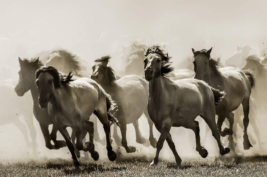 Gallop White Modern Wood Framed Art Print with Double Matting by Uhlig, Dieter