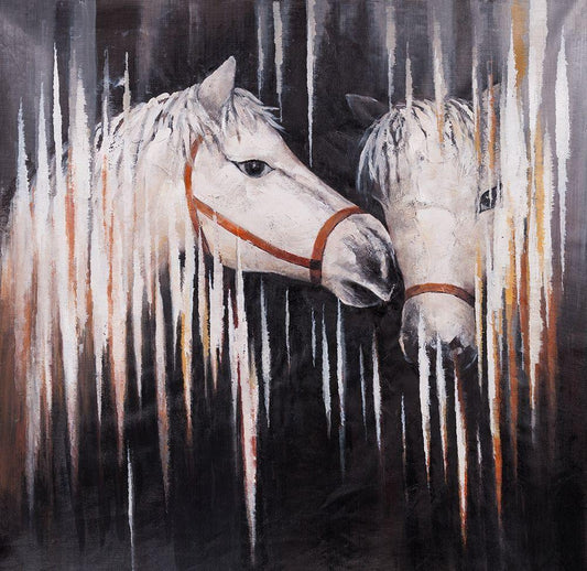 TWO WHITE HORSES KISSING White Modern Wood Framed Art Print with Double Matting by Atelier B Art Studio